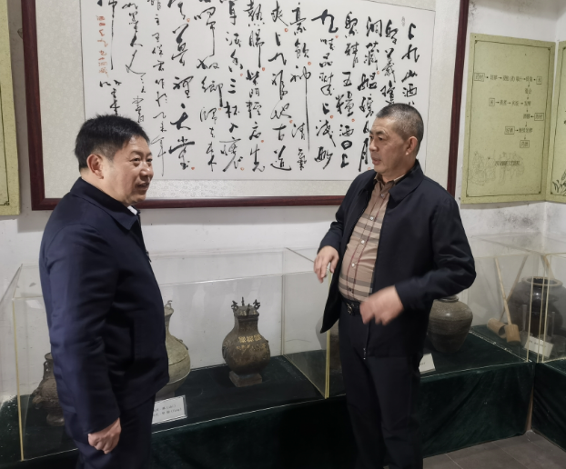 中基东方集团副总裁刘鑫为唐廷教书记讲解景区文化及藏品
